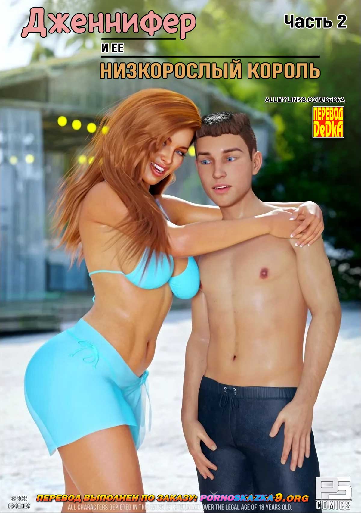 Читать далее 23 Апр 2026 2573 0Порно комикс «Дженнифер и ее низкорослый король. Часть 2.»